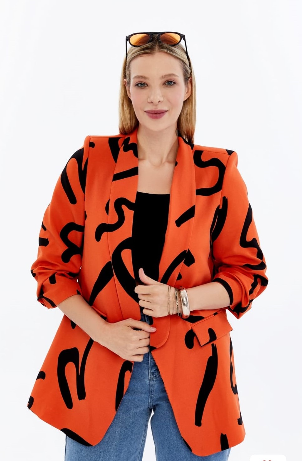 Abstract Print Blazer (Orange)